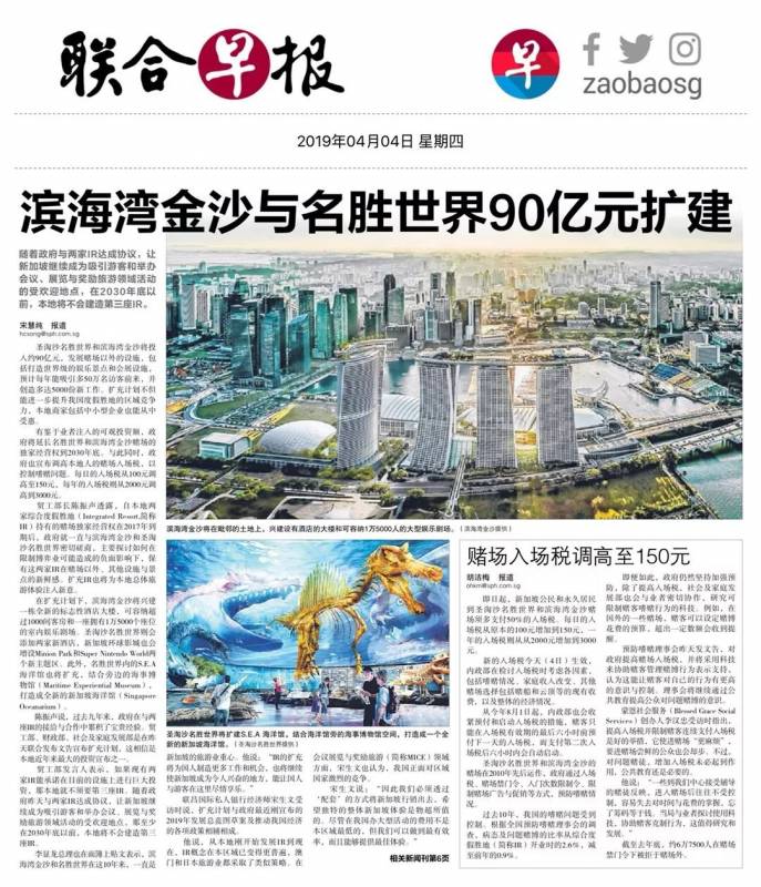 后又壕甩90亿新元,扩建圣淘沙名胜世界和滨海湾金沙!