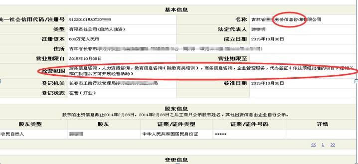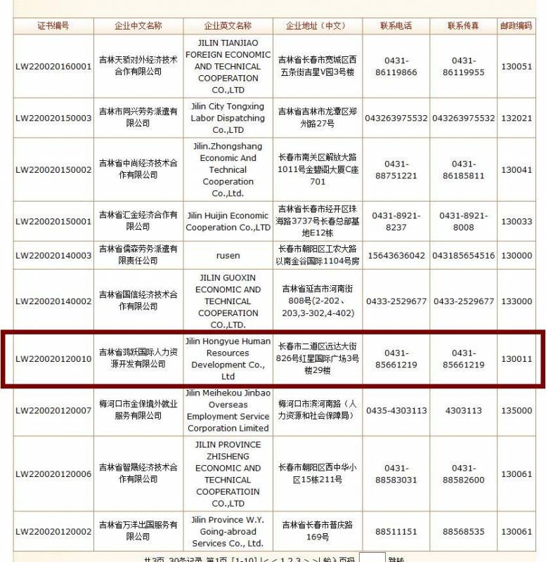 我们这里以吉林省鸿跃国际人力资源开发有限公司为例