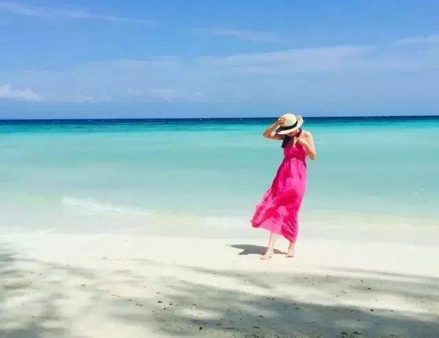 蓝天,碧海,白沙~ 裙摆轻摇,心情也温柔得沉溺在美景当中~
