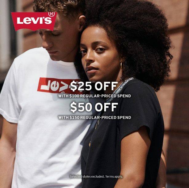 购买Levi's牛仔裤,消费满$150即可减$50,消费满$100减$25~