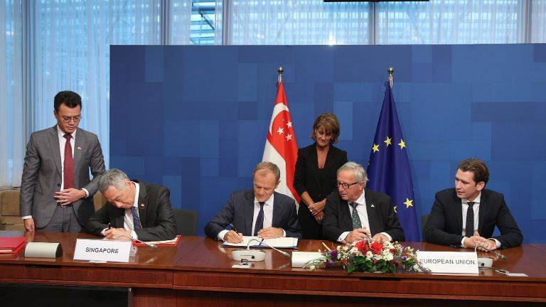 10月20日新加坡正式同欧洲联盟签署《欧盟-新加坡自由贸易协定》(EUSFTA)。
