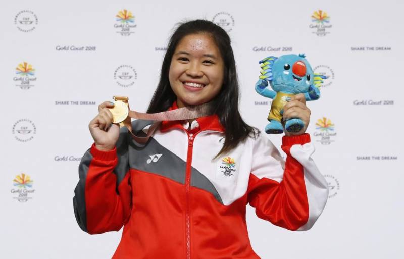 其中18岁的我国射击女将林睿娜,在女子十米气步枪和50米步枪卧姿项目中,为新加坡射下两面金牌,同时刷新两项赛会纪录。