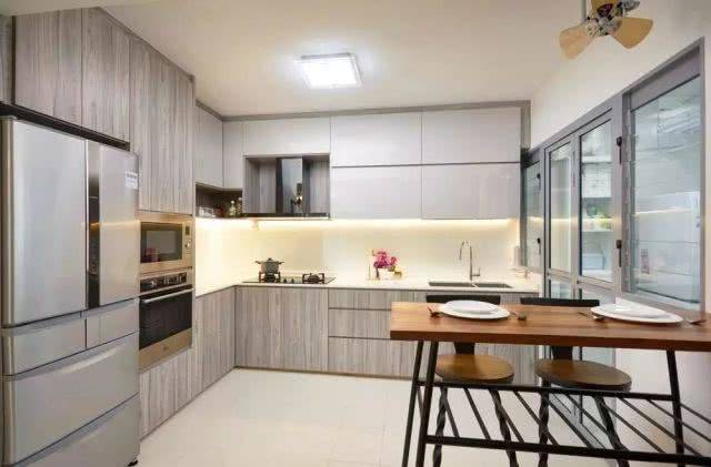 厨房是满足味蕾的地方,优雅的背景设计,整齐划一,宽敞的空间,经久难用的橱柜。