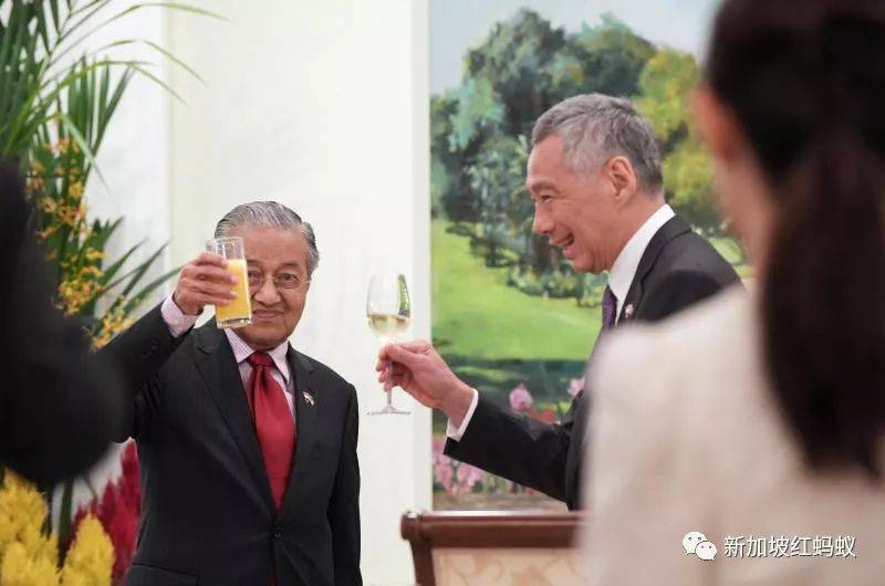 李显龙总理(左)今年11月与马来西亚首相马哈迪(右)在总统府会晤时干杯。(海峡时报)