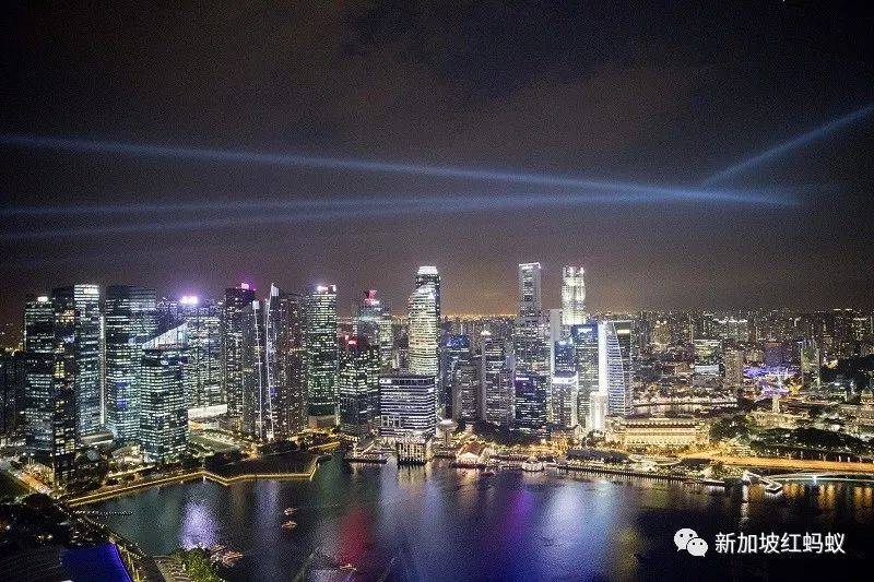 从滨海湾金沙鸟瞰新加坡市中心的天际线。(彭博社)