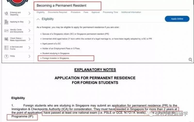 我们来看一下学生申请PR的必要条件。根据新加坡ICA的要求,学生要申请PR,必须满足以下两个要求: