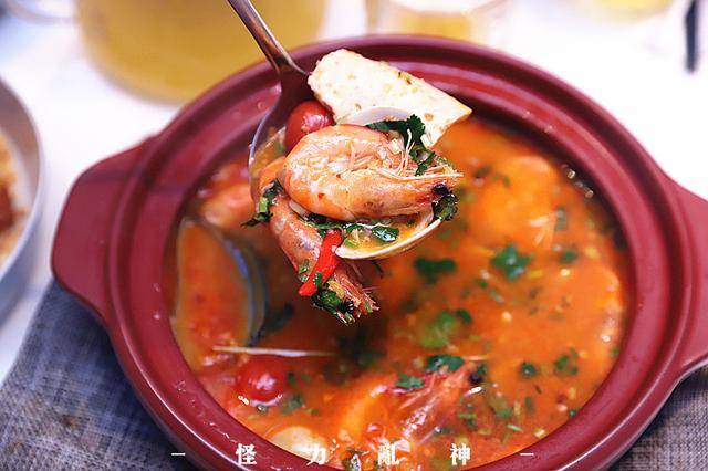 在东南亚所有的汤中,我最喜欢冬阴功汤的酸辣撩人。红红的汤头让人看了就馋,里面还有虾、文蛤等,每一样都很好吃,香茅独有的味道主导著一切,是来这儿一定要点的菜品。