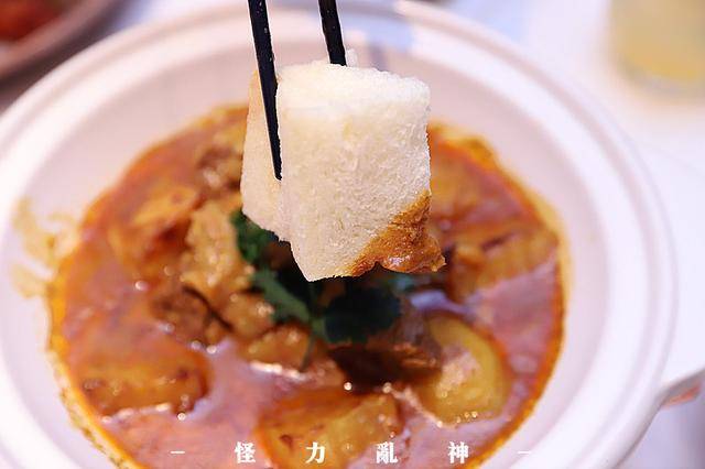 东南亚的咖喱也是出了名的好吃,这道慢煮咖喱牛腩配海南老面包,选用东南亚的香料入味到牛腩中,将牛腩炖的软烂有味道,加入咖喱之后让牛腩的味道更丰富。咖喱拌饭再好吃不过了,用海南老面包蘸着吃,也是一种全新的尝试。