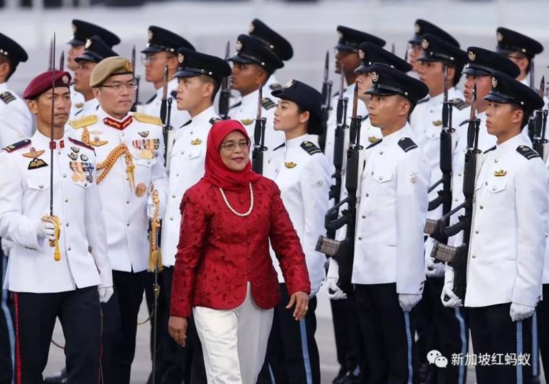 哈莉玛总统是新加坡的第一任女总统,她在2018年首次以总统身份在国庆庆典上检阅仪仗队。(联合早报)
