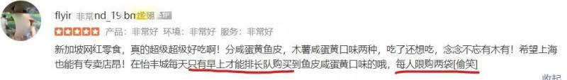 炸鱼皮是新加坡餐馆的传统小菜之一,Irvin把它“咸蛋化”之后,立刻变成了一款网红零食,并迅速红遍海内外,在马来西亚、泰国、台湾等地均有销售。除了炸鱼皮,这家店还推出了薯片,而且口味也兼顾了吃辣和不吃辣的人群。
