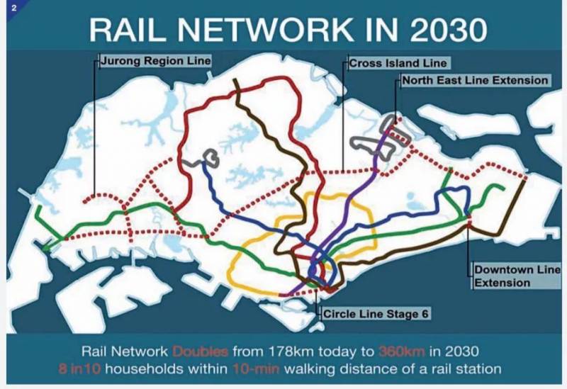 到2030年,80%的家庭都可以在10分钟内步行至最近的地铁站,MRT轨道将从现在的178公里扩建到360公里,MRT将成为大家出行的最佳选择。