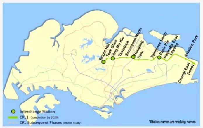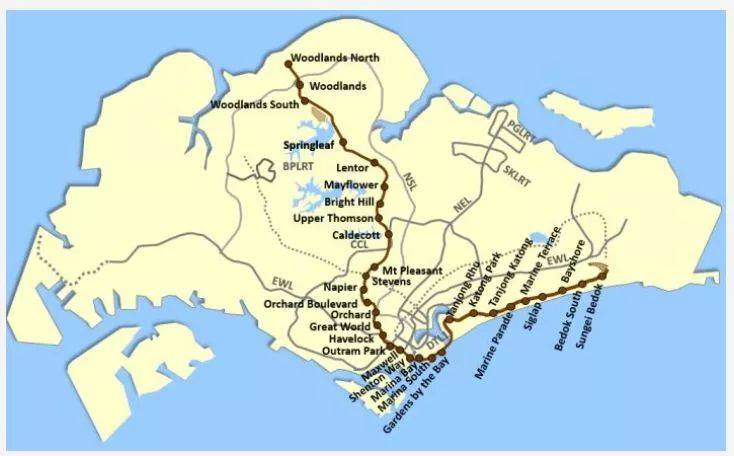 50公里的跨岛线将穿越新加坡樟宜,途经巴西立,后港,宏茂桥等12个站。这条线将成为新加坡最长的完全地下线。
