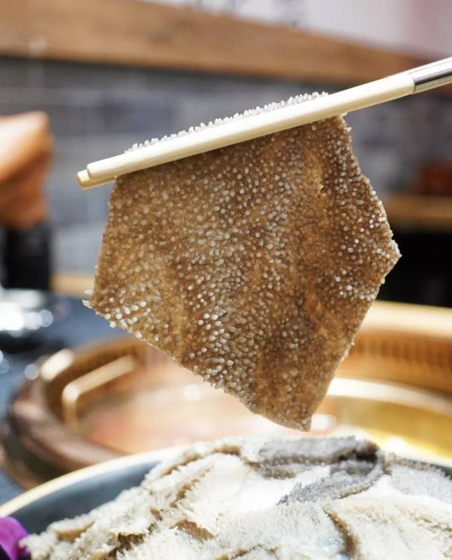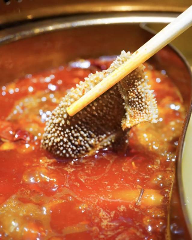 看着白嫩嫩的千层肚入辣锅沉浮起落