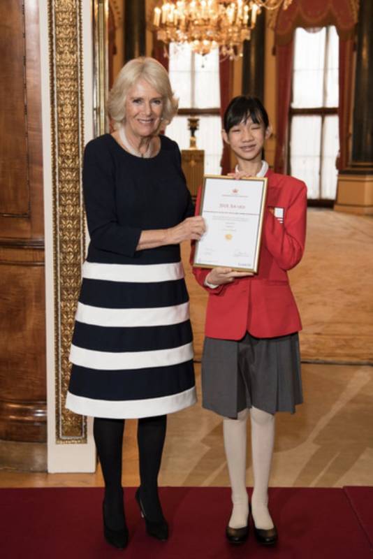 康沃尔公爵夫人为新加坡学生Janine Shum颁奖