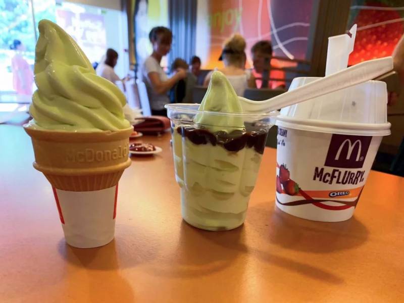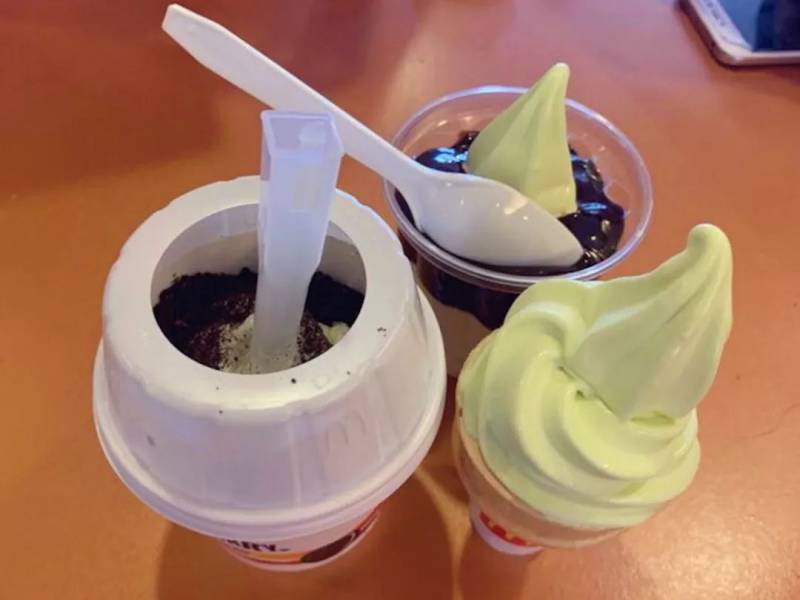 班兰是热带非常有名的一种植物,新加坡许多甜点里都有使用,比如包括林俊杰都赞不绝口的Pandan绿蛋糕。麦当劳走在甜品界前沿的甜筒当然也不能落后!一口气把旗下所有的冰品都出了个班兰口味~