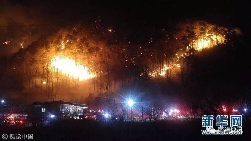 2019年1月1日,韩国江原襄阳,当地遭山火侵袭,并向村庄蔓延。