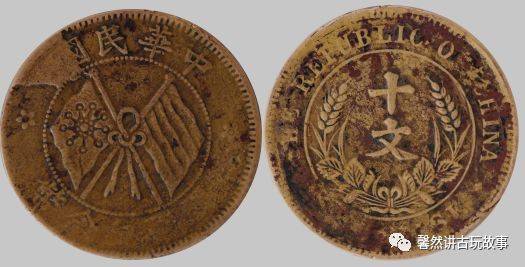 张先生的藏品设计精美,包浆圆润,色泽明亮,工艺精湛,纹饰精美,品相精致,纵使饱经风雨洗礼,但纹路依然清晰可见,钱文、轮廓的清晰程度高,风采迷人,极其罕见,具有很高的历史价值、艺术价值和收藏价值,十分珍贵。开国纪念币双旗十文背面的纹饰乃孙中山下令鼓铸钱币新花纹“中间应绘五谷模型,取丰岁足民之义,垂劝农务本之规”,图案非常考究,寓意美好吉祥。