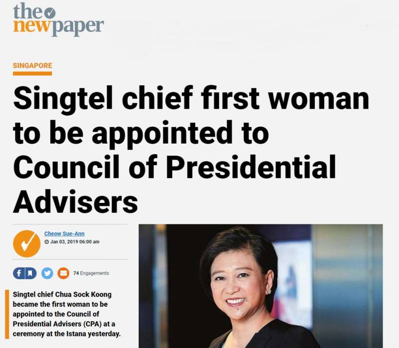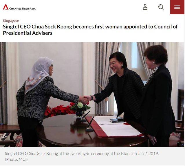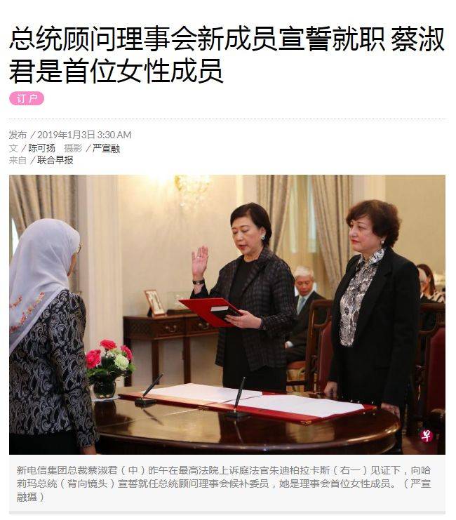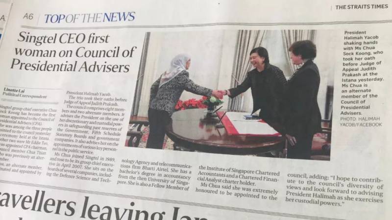 当然了,发布报道的还不止以上这些媒体,总而言之,是件大事。毕竟,她是第一位成为新加坡总统顾问理事会成员的女性。