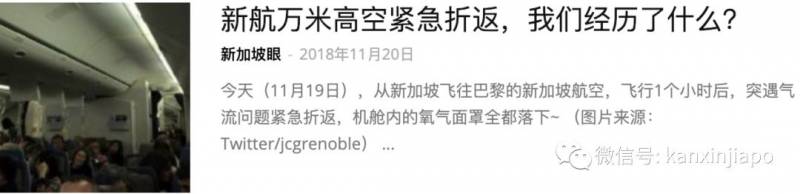 飞行1个小时后,突遇气流问题,机舱内的氧气面罩全都落下~紧急折返回樟宜机场。
