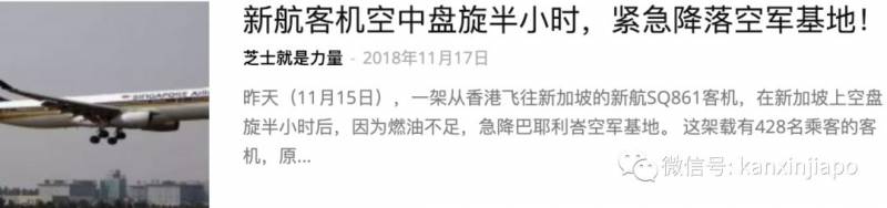 广告11月15日,香港飞往新加坡的新航SQ861,在新加坡上空盘旋半小时不能落地。因为燃料不足,只得急降巴耶利峇空军基地。随后,这艘飞机又将乘客拉到了樟宜机场......