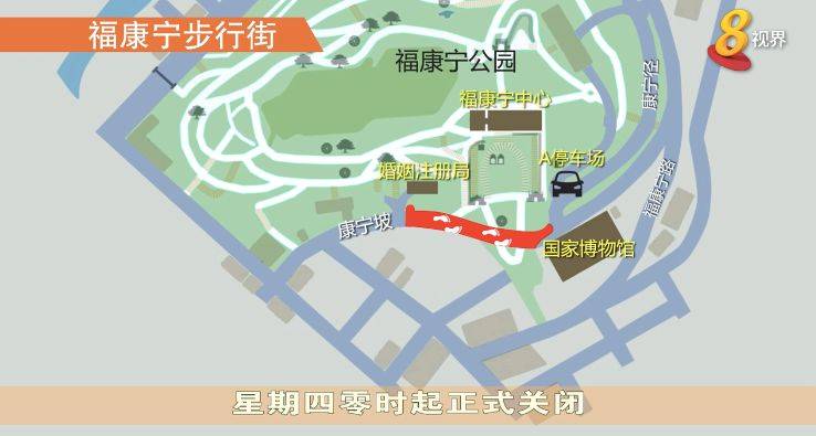 康宁坡关闭后,将展开改善工程,成为步行区。一旦工程结束后,公众前往福康宁公园时,将变得更安全和更便利。记者上午观察发现,婚姻注册局路口的交通混乱。一些司机不清楚路段已关闭,以致车辆非法U转。“会麻烦如果他前面有放一个指示牌,说直走封路,我们就不会转进来”,“我们都不清楚 刚才跟搭客聊天时他们说这条路从这边很好走”。