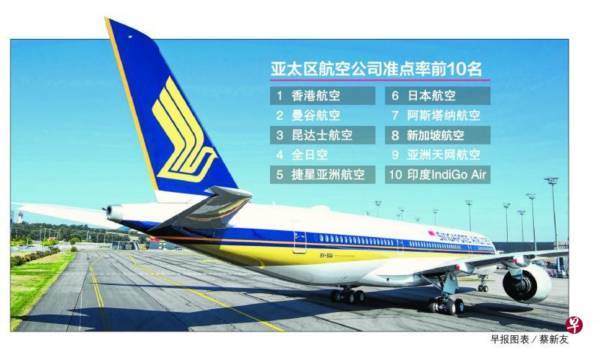 报告显示,新航去年的准点率达到83.46%,比前一年的84.07%逊色,在全球最准时的20家航空公司排行榜上下滑两个位置至第15名;在亚太区则排第八名,名次同样滑落两个位置。