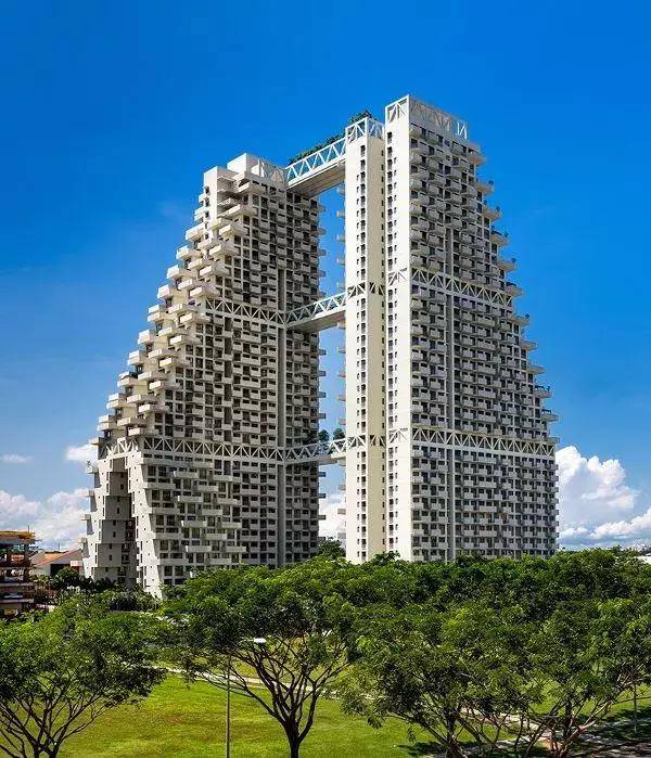 由萨夫迪建筑事务所设计的“天空之城”项目是一个最近完成的位于新加坡璧山区的居住综合体。通过打破传统塔楼体量,设计产生了一个由房间组成的三维矩阵,这些房间有着私密天台,阳台和公共的花园。两个38层的体量通过三个空中连廊连接,也可以叫做空中花园,把自然带入到空中,也给住户带来多种的娱乐消遣和集会空间。