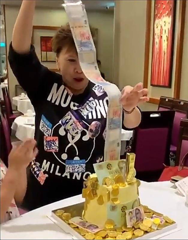 (新加坡5日讯)钞票生日蛋糕,一按就能不停吐钞票,也能让寿星不断从里头拉出钱来,在网上爆红。