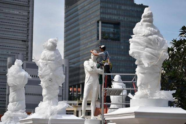 从上周六开始,位于新加坡河(Singapore River)码头的白色大理石雕像似乎正在“消失”。