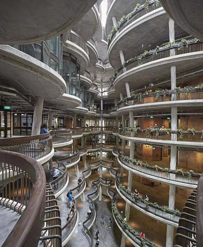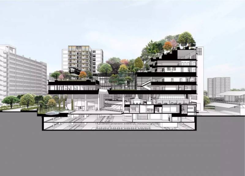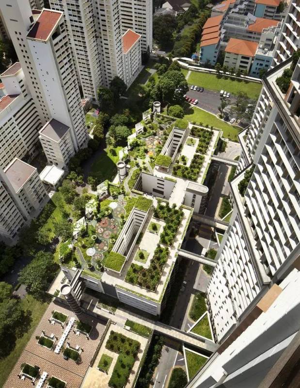 项目在有限的场地内,创造了丰富的空间体验,下层是开放广场,中层是医疗中心,上层是老人公寓和社区公园。这三个截然不同的楼层将各种建筑用途串联在一起,使土地利用最大化,形成一个垂直村庄,是应对新加坡人口老龄化设计探索的典型案例。