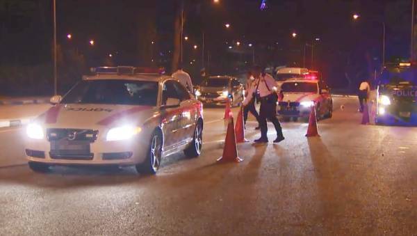 新加坡交警在这次的酒驾取缔行动中,逮捕五人。(陈斌勤摄)