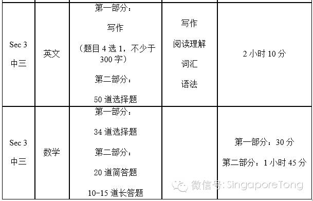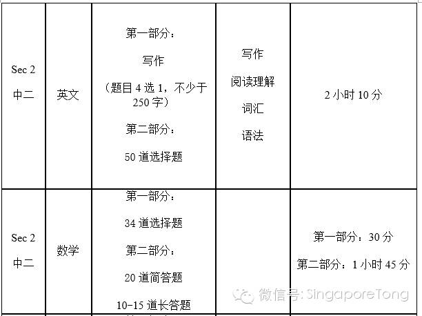 对于各个年级,新加坡AEIS考试的考试内容是不同的:
