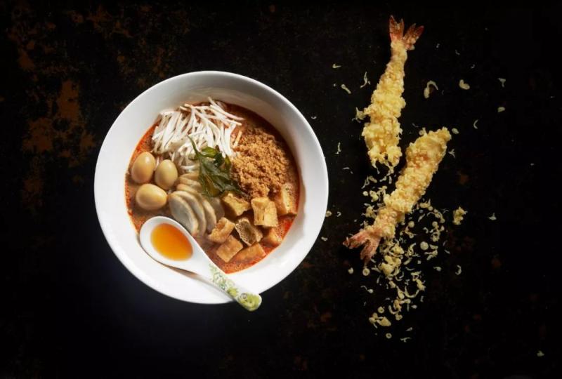 新加坡叻沙与茶熏鹌鹑蛋及天妇罗老虎虾(Singapore Laksa with Jasmine Tea-smoked OnsenQuail Eggs, Housemade Dried Shrimp Oil, Shrimp Floss and Tiger Prawns Tempura ), S$32: 天妇罗老虎虾、茉莉花茶熏鹌鹑温泉蛋(这是小编有生以来吃过最好吃的蛋!),以及自制虾米丝, 这道叻沙的特选好料可以说是相当的豪华丰富了,有趣的是其中的粗米粉还是以新加坡人喜爱的加东叻沙风格剪短呈献得哦。弥漫着浓浓椰浆香味的叻沙,虽然说S$32的价格听起来有些夸张,但是配上这味道,绝对是值了!