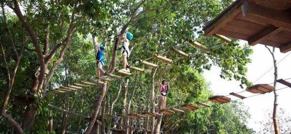 挑战悬在半空中、群树之间的梯子、独木桥、秋千、吊网、木架和滑梯。探险区域旁就是风景宜人的蓄水池,凉风徐徐,让人们在刺激燥热的时候也能感受到一丝清凉,绝对是享受!