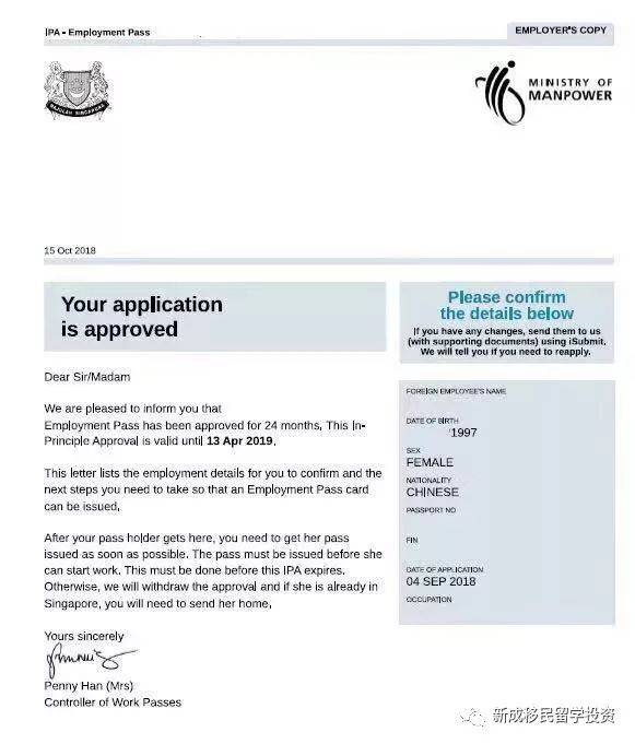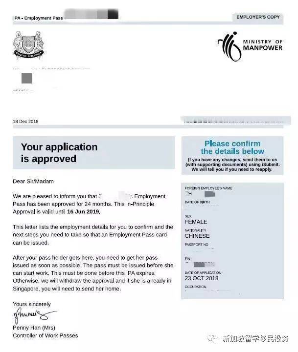 我们新成顾问针对客户Z小姐的自身条件,研究分析,在第一次被拒签之后及时申诉,迅速准备材料并测试,并在短时间内提交,虽然又是漫长的等待。但是我们新成团队的直接负责人每天都定时去MOM的网站检查申请状态,我们每天都希望有好消息发生。终于在2018年12月18日,Z小姐的EP批准了。