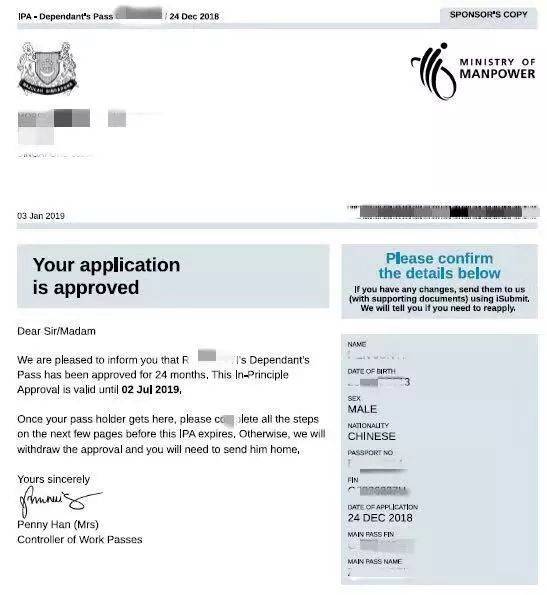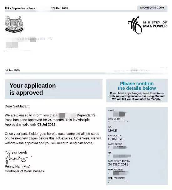 EP批准,申请家属准证(DP)就顺利得多一般在【1-2周的时间就可以顺利办理】.2018年12月24号,Z小姐的先生和孩子的家属准证【就是DP英文全称Dependant's Pass】分别陆续被批准,全家人都可以在实现在新加坡生活梦想!