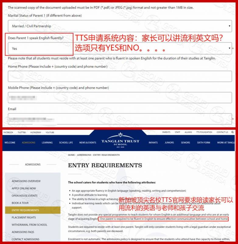 真的不是小编吓唬大家,以上是TTS申请网页截图,学校官网贴出的要求,孩子面试的时候也会与家长进行全英文沟通~所以,好的学校对于孩子的家庭环境与家长素养也有超高的标准呢,如果您担心陪读英文不达标可以考虑环球的新加坡高等项目哟,和孩子一同学习!
