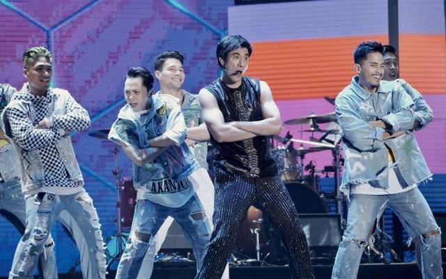 王力宏(中)与16人舞团在台上劲歌热舞,安排不少幽默桥段,表演颇具娱乐性。(宏声文化提供)