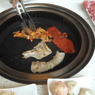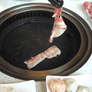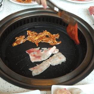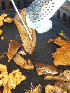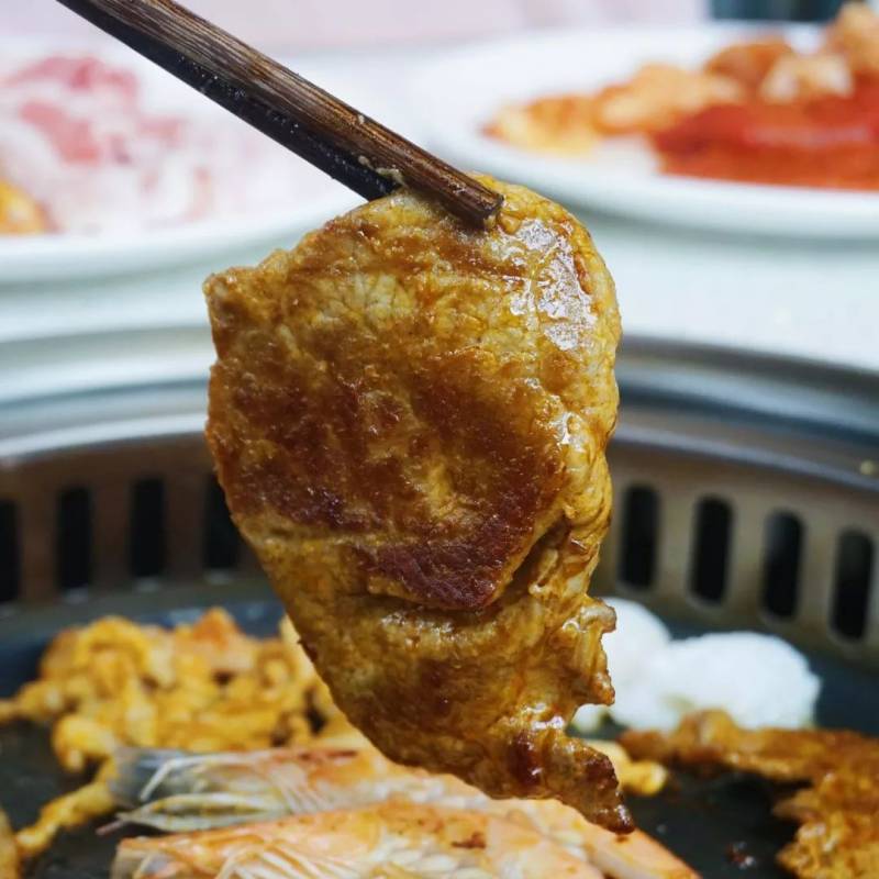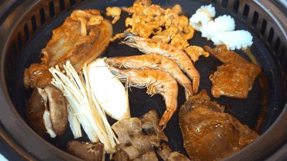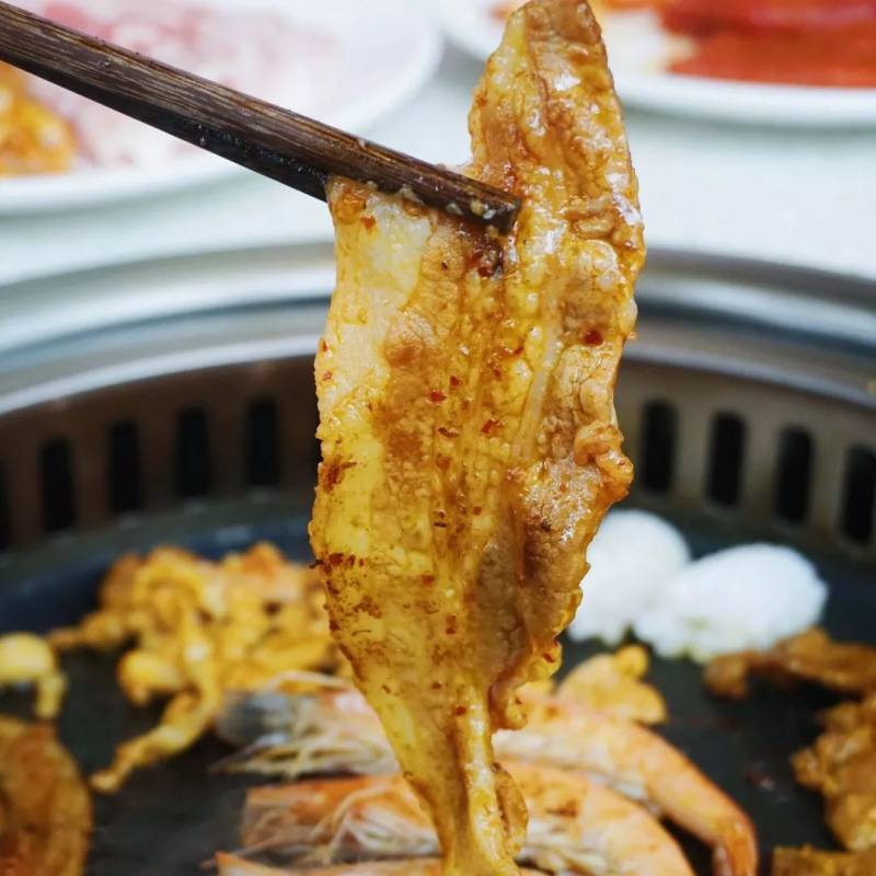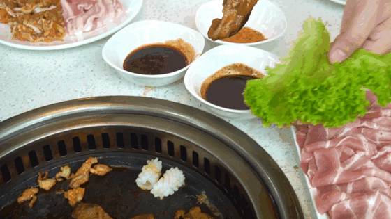 烤肉在烤盘上发出“滋滋滋”的声音甚是享受!