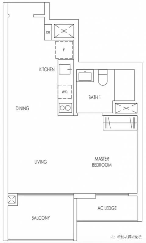 有些还配备一个书房。特点是户型方方正正,布局合理,采用开放式厨房,无浪费空间,客厅与餐厅共享空间,客厅还配备阳台。客厅与卧室的大小可由居民自由调整或完全无需隔开,从而增加了宽敞感。这样的户型非常适合夫妻情侣享受二人世界,以及专业人士和学生。除了自住,也适合出租给高端专业人士。