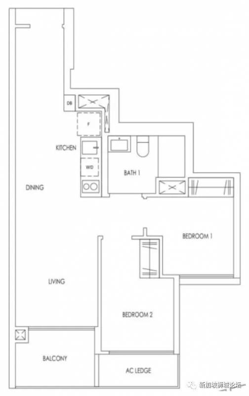 特点是户型方方正正,布局合理,无浪费空间,客厅配备阳台。两个卧室均配备衣柜,共用一个卫生间。这样的户型非常适合夫妻情侣享受二人世界,也很适合有个小孩的夫妻,以及专业人士和学生。除了自住,也适合出租给高端专业人士。