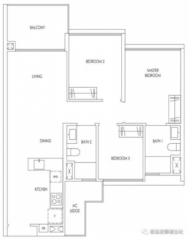 共同特点是,户型方方正正,所有房间均配备内置衣柜。厨房相对独立,餐厅与客厅共享空间,客厅配备阳台。这种房型特别适合有2个小孩的夫妻,以及专业人士和学生,以及出租给相关高端专业人士。