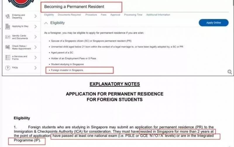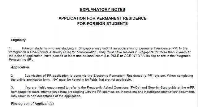 我们来看一下学生申请PR的必要条件。根据新加坡ICA的要求,学生要申请PR,必须满足以下两个要求: