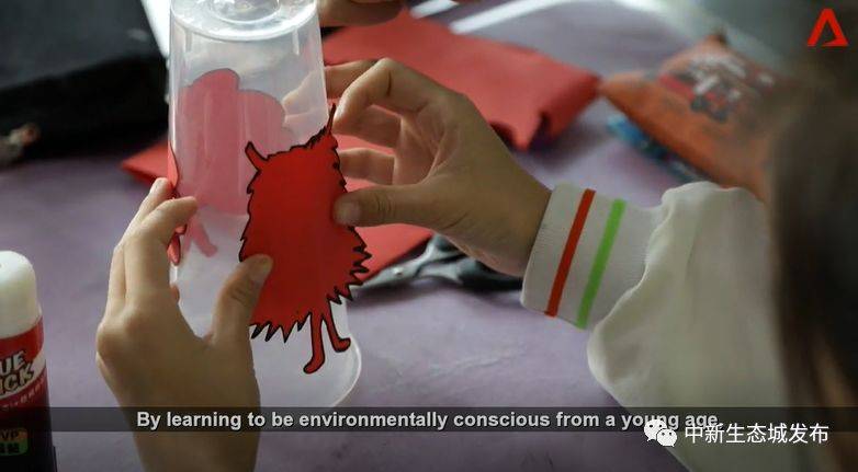 这些绿色课程的内容也都成为了新加坡亚洲电视台采访的素材和灵感。在电视台拍摄的一节美术课上,老师带领学生用废旧的饮料杯、碎纸片等材料,拼贴、组合成了一个个搞怪、百变的小怪兽形象,在动手制作的乐趣中,感受到绿色生态的理念。学生们天马行空的创意,也让电视台记者连连称赞。