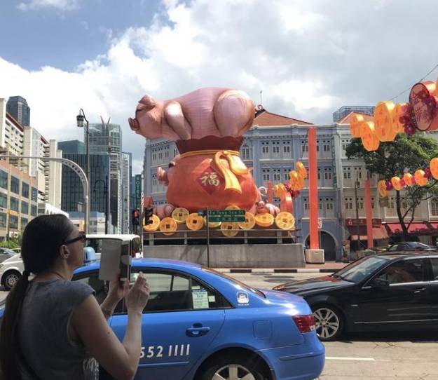 艹!最丑年年有!新加坡“唐人街”猪年灯饰被批“猪大肠”...