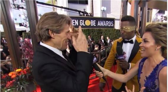 在今年第46届“金球奖”(Golden Globe Award)红地毯上,主持人史考特·伊万(Scott Evans)也加入“蒙眼挑战”,猜测接下来走红地毯的是哪一位艺人。