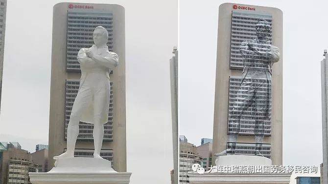 原来,新加坡是用“黑科技”,让莱佛士隐身,以此纪念新加坡开埠200周年。