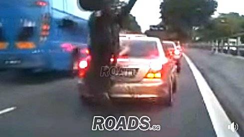 广告网民向ROADS.sg的Facebook页面提供行车记录器视频显示,一名身穿灰色上衣的摩哆骑士在第一条车道穿行,由于道路有些拥堵,旁边的摩哆陆续放慢速度。