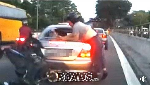 (新加坡8日讯)一名摩哆骑士在快速公路发生意外,冲撞上前方轿车后飙飞,直冲撞碎轿车的挡风玻璃,十分惊险。路上的多名骑士纷纷下车向他伸出援手,暖心行为获网民频点赞。