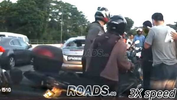 一旁的摩哆骑士伸出援手(图:Firdaus Khamis/ROADS.sg/Facebook视频截图)
